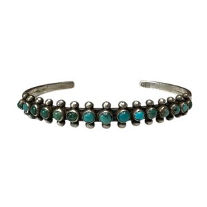 Signed Mathilda Benally Navajo Sterling Silver Turquoise Petite Point Cuff Bracelet