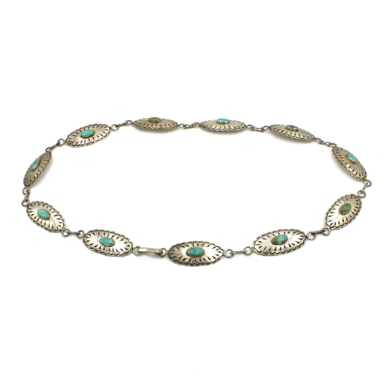 The balance of refined stamping and organic turquoise variation gives this piece a timeless, highly wearable presence—equally at home dressed up or worn as an everyday statement. Whether styled at the waist or worn as a necklace, this is a standout example of Native-made craftsmanship with enduring appeal.