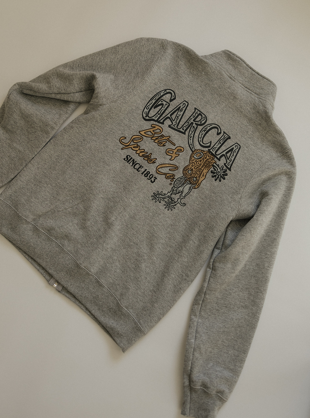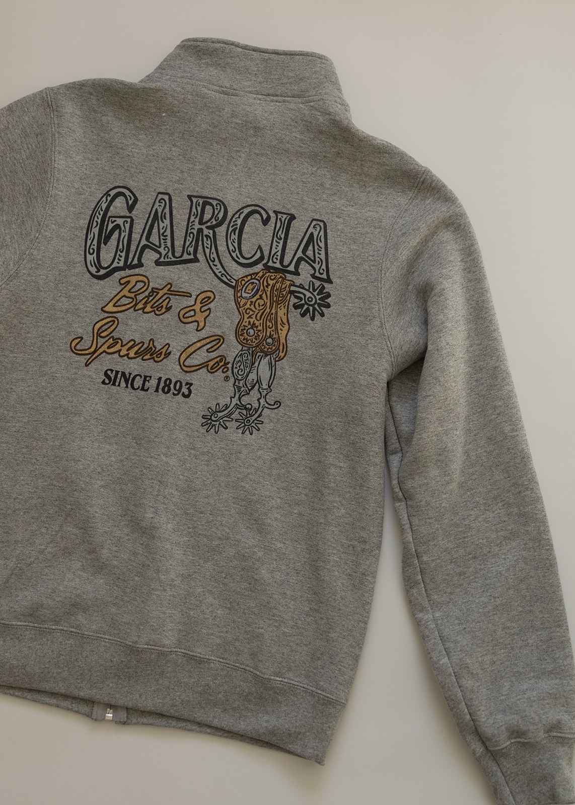 Rooted in over a century of craftsmanship, the Garcia Legacy Full-Zip Sweatshirt honors the enduring history of Garcia Bits & Spurs Co., established in 1893. Featuring a vintage-inspired Garcia graphic on the back and a subtle chest mark on the front, this sweatshirt reflects the tradition, pride, and workmanship that have defined Garcia for generations.