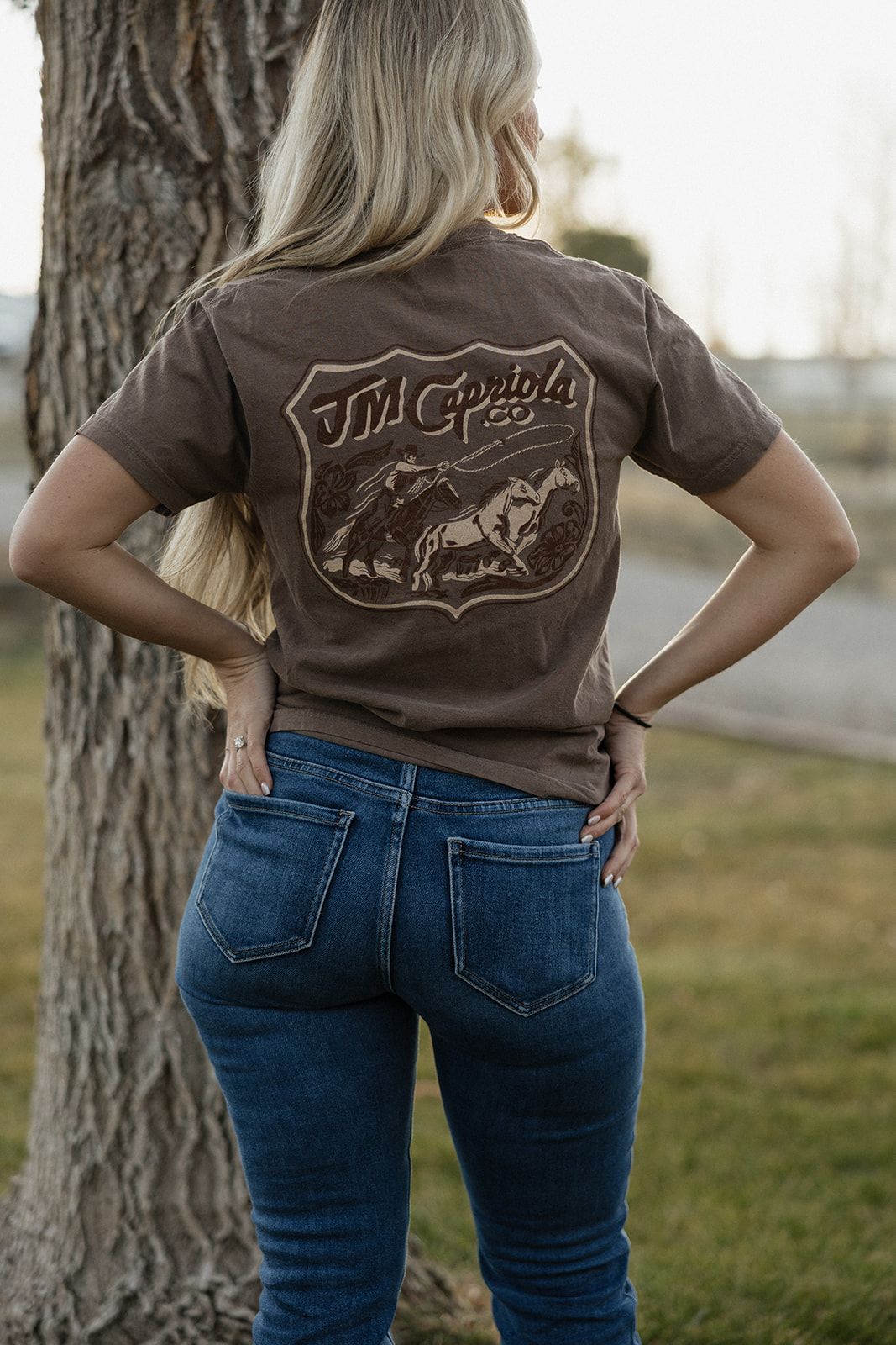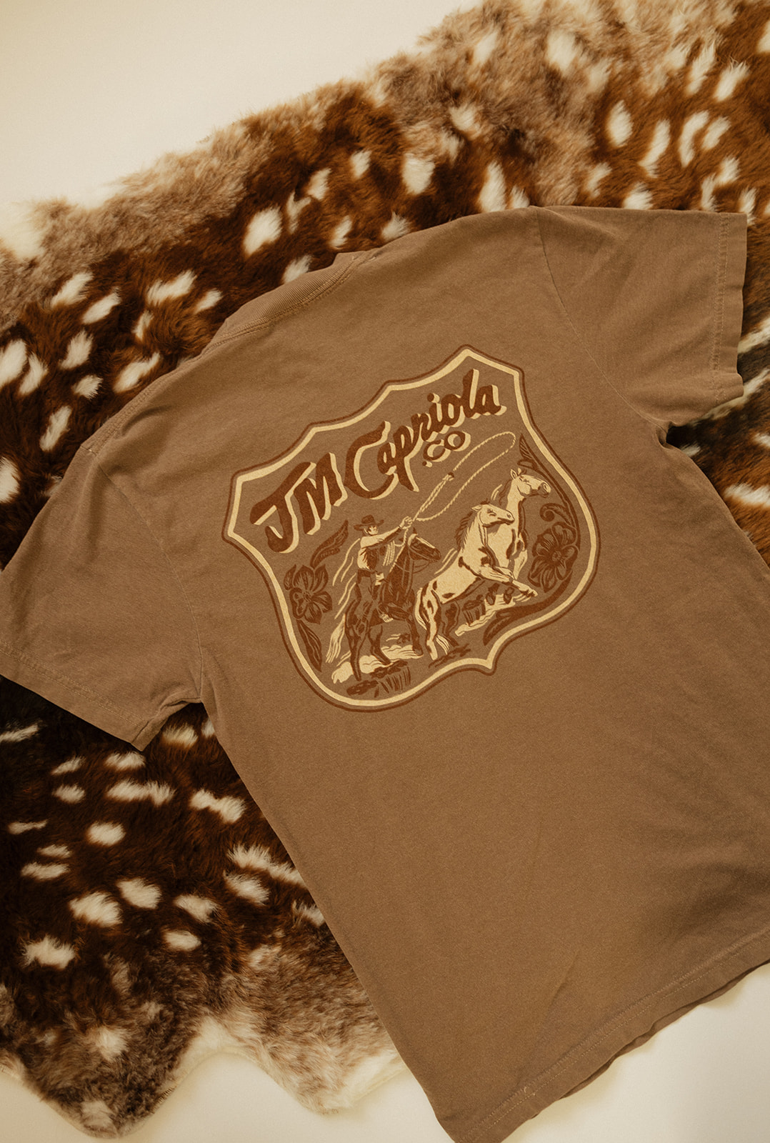 The Range Rebel Tee pays tribute to the independent spirit of the West, the cowboys and cowgirls who worked outside the lines and built their own way forward. Featuring bold, vintage-inspired artwork by Isaiah Stewart on the back and a clean J.M. Capriola Co. mark on the front, this tee blends classic Western grit with everyday wearability.
