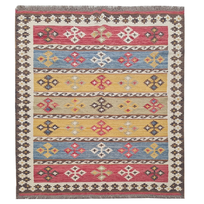 Every Chobi kilim carries the warmth of the maker’s hand. Woven to last for generations, this rug reflects centuries of tradition from regions where weaving is both daily craft and cultural heritage. Its celebratory pattern evokes abundance, gatherings, and the welcoming spirit of home a perfect addition to Western and bohemian-inspired interiors alike.